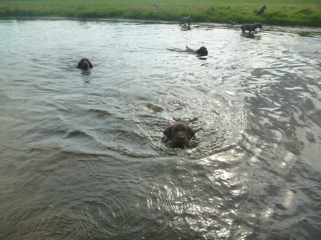 Mein Ziel ist es, gesunde, nervenstarke, ausgeglichene und leistungsstarke Jagdgebrauchshunde zu züchten. Dabei lege ich großen Wert auf eine sorgfältige Auswahl der Elterntiere. Doch selbst die beste Verpaarung allein reicht nicht aus – entscheidend ist auch die frühe Förderung der Welpen.