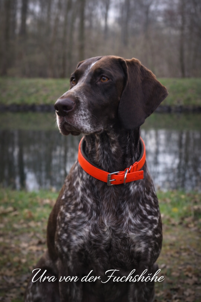 Ura ist eine sehr kompakte Hündin, mit einem Stockmass von 64 cm. Sie ist absolut ruhig und angenehm im Wesen. Im Feld zeigt Ura regelmäßig Ihre super Nasenarbeit und steht fest vor. Am Raubwild ist Ura absolut kompromisslos und knallhart. Die Wasserarbeit ist Ura,s absolute Leidenschaft, hier zeigt Ura Ihren stark ausgeprägten Finderwillen. Am Schwarzwild jagd Ura mit Sinn und Verstand, bis 40 kg Stücke werden gehalten und größere Stücke stellt sie. Es macht einfach riesen Spass mit Ura zu jagen, sie ist nicht nur ein toller Jagdhund sondern auch ein Liebevoller Familienhund.